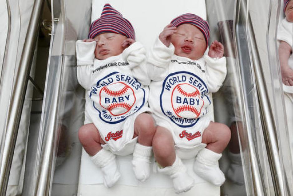 The Cleveland Clinic says at least five babies born Tuesday at its Fairview Hospital were dressed in World Series onesies. It says babies born throughout the World Series at several of its hospitals will be dressed in the outfits to help cheer on the Indians' quest for a championship as they take on the Chicago Cubs.