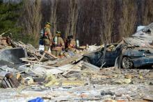 Personnel from Patton Volunteer Fire. Company search for survivors of a house explosion in Clearfield Township, Cambria County, Pa. State police, firefighters and the coroner were investigating after one person was killed and two were injured in the explosion at a western Pennsylvania house. (AP Photo/Altoona Mirror, Patrick Waksmunski)