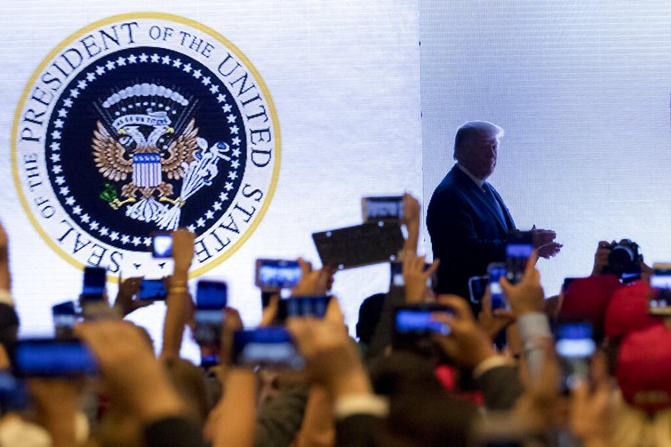 Spokesman Judd Deere says officials "never saw the seal" before it was projected on a screen behind Trump as he was introduced at Turning Point USA's teen summit on Tuesday. The real seal has a bald eagle clutching arrows in one set of talons and an olive branch in the other.