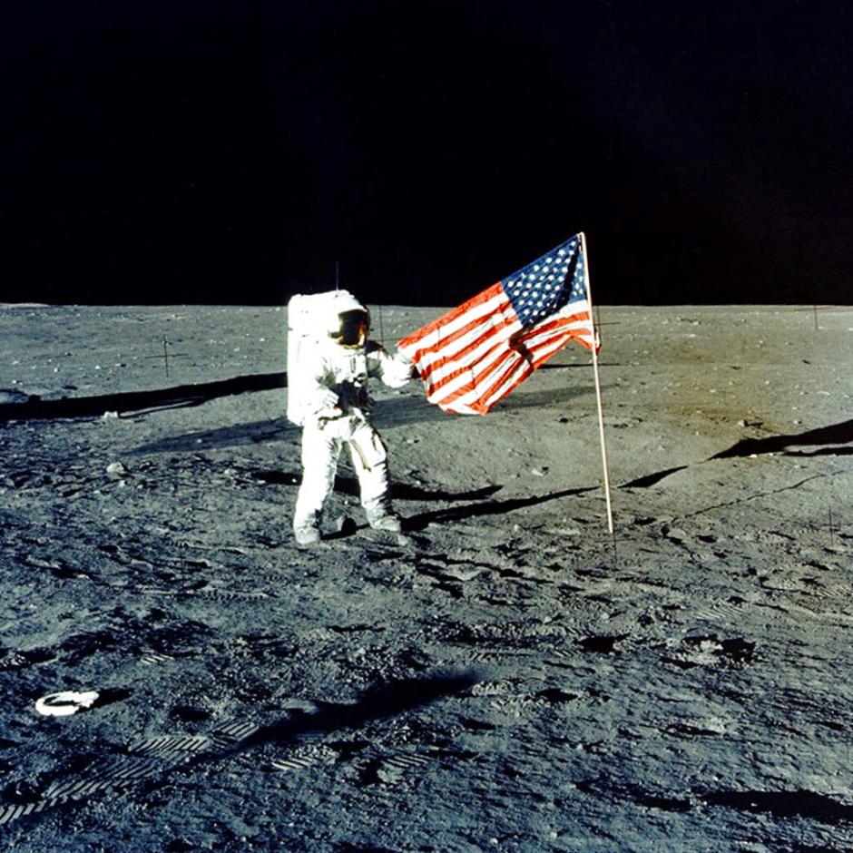 U.S. flags were planted on the moon during each of the Apollo landings through 1972. The first was knocked over by engine exhaust when Apollo 11's Armstrong and Aldrin blasted off the moon.