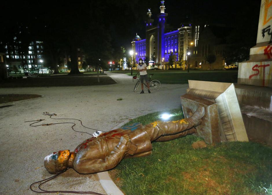 RICHMOND, Va. (AP) — A small group of demonstrators toppled a statue of a Confederate general in the the former capital of the Confederacy late Saturday, following a day of largely peaceful protests in the Virginia city.