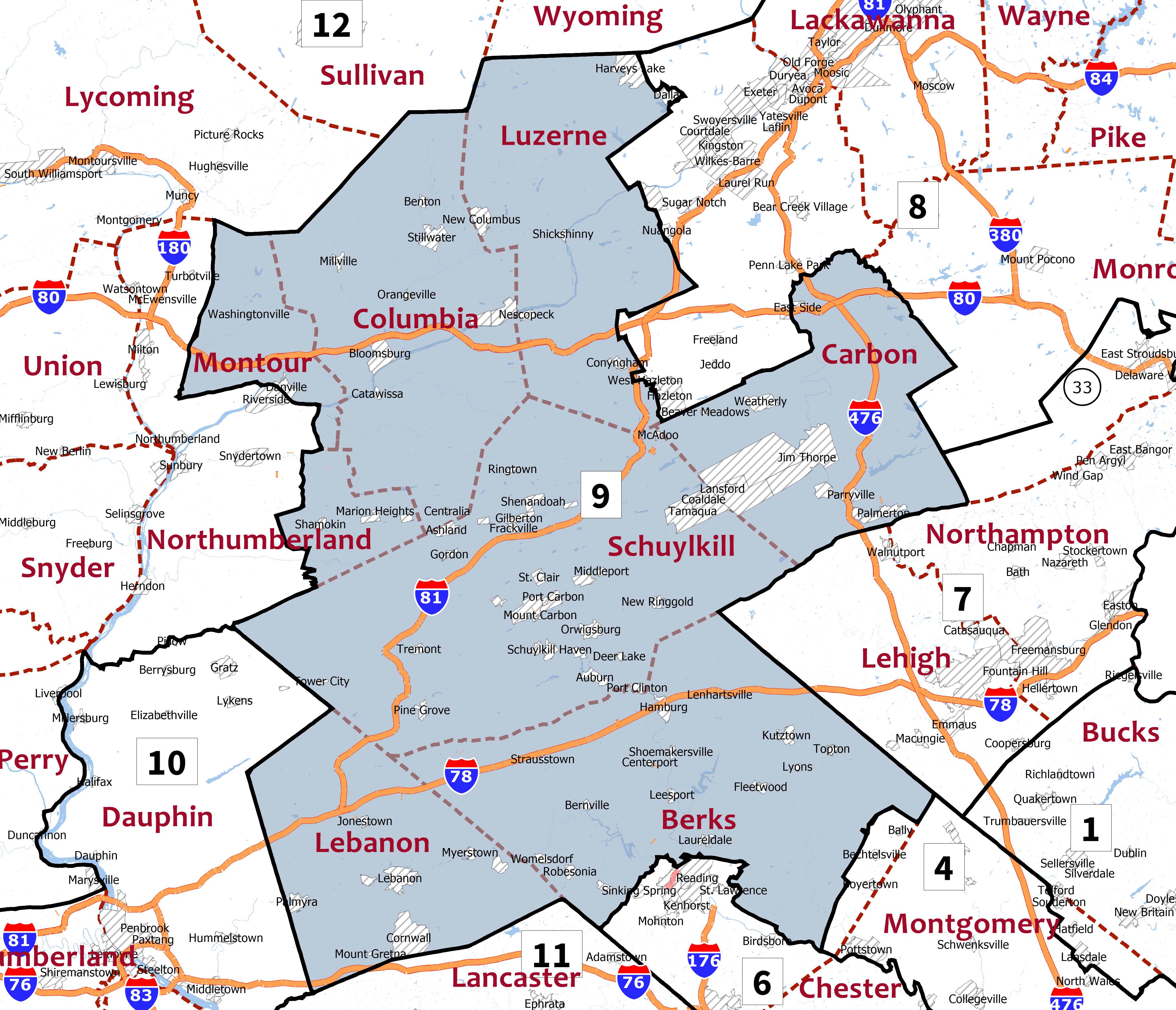 In the new 9th District, drawn by the Supreme Court earlier this year due to a court case, there is no incumbent. Democrat Denny Wolff of Millville and Republican Dan Meuser of Kingston Township are facing off for the seat.