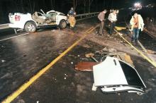 FRANKLIN TWP. — Two men died and two others were left seriously injured in a violent two-vehicle crash along Route 487 here late Wednesday...